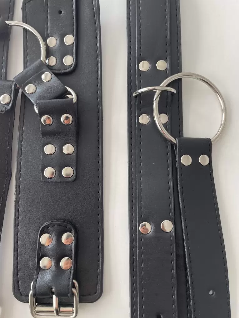 Acest set BDSM elegant combină restricția cu rafinamentul. Cătușele și gulerul sunt unite printr-o curea de legătură reglabilă, ce permite fixarea brațelor într-o poziție erotică și supusă. Materialul moale din interior oferă confort chiar și în sesiunile prelungite, în timp ce aspectul lucios al pielii ecologice adaugă o aură provocatoare.