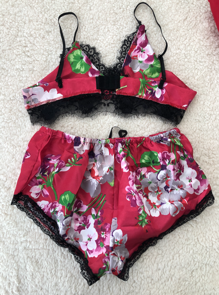 Pijamale rosii sexy cu imprimeu floral si dantela, cod produs: CR28